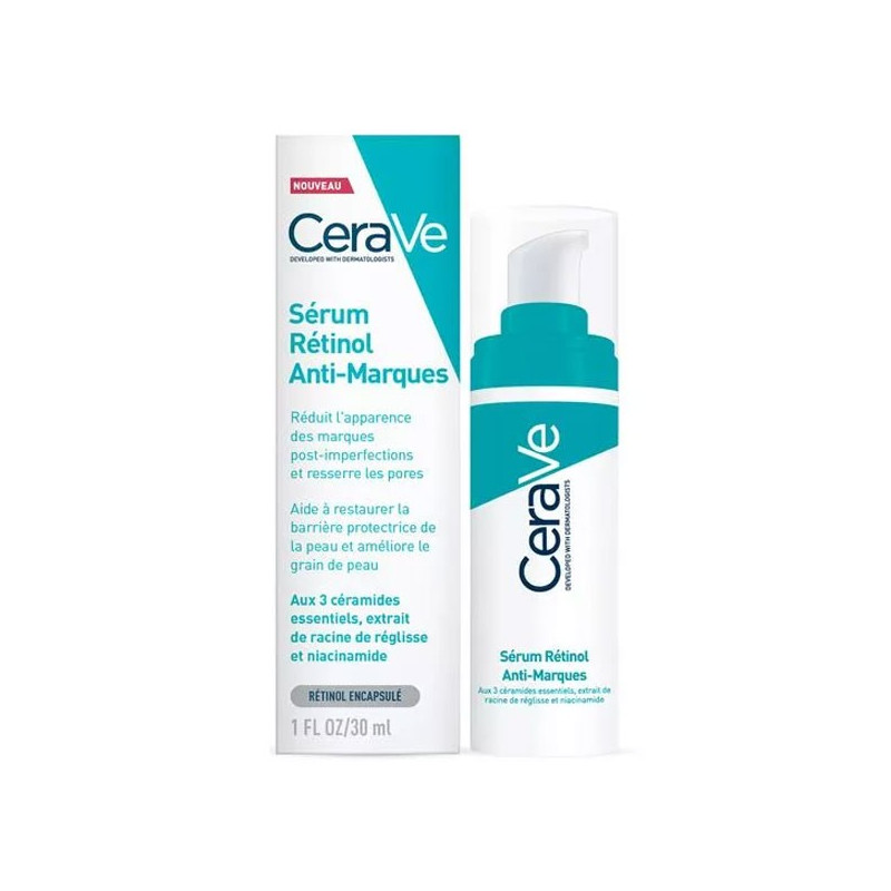 CeraVe Anti-Imperfection Sérum Rétinol 30ml réduit l'apparence des marques persistantes dû à l'acné ! Il lisse, améliore et resserre les pores de la peau.