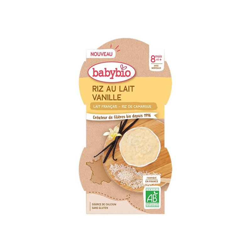 Et pour débuter l’introduction des morceaux dans l’alimentation de bébé, quoi de plus gourmand qu’un riz au lait à la texture onctueuse et fondante ? Du bon lait de vache français et du riz de Camargue accompagnés d’une touche de vanille Bourbon de Madagascar… Il n’en fallait pas moins pour faire chavirer les papilles de bébé !