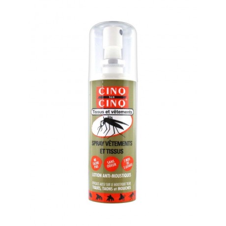 Cinq sur Cinq Spray Vêtements et Tissus Lotion Anti-Moustiques 100 ml est un spray pour tissus et vêtements qui permet d'assurer une protection optimale
