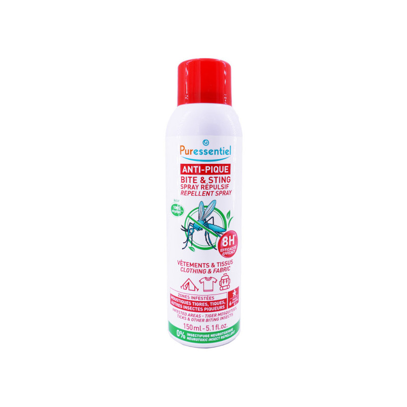 Cette lotion ANTI-PIQUE Répulsif Tissus sous forme de spray facile à transporter, éloigne et protège efficacement des moustiques tigres tropicaux et commun (jusqu’à 8 heures), tiques (durant 4 heures) et phlébotomes (jusqu’à 7 heures 30). Sa formule aux actifs végétaux d’huiles essentielles dont l’Eucalyptus citronné est conçu spécialement pour un usage sur les vêtements et les tissus. L’utilisation de ce spray, engendre une possible protection contre différents vecteurs (paludisme, dengue, Zika, fièvre jaune, maladie de Lyme et chikungunya). 0% insectifuge neurotoxique - 0% insectifuge neurotoxique - Sans gaz propulseur