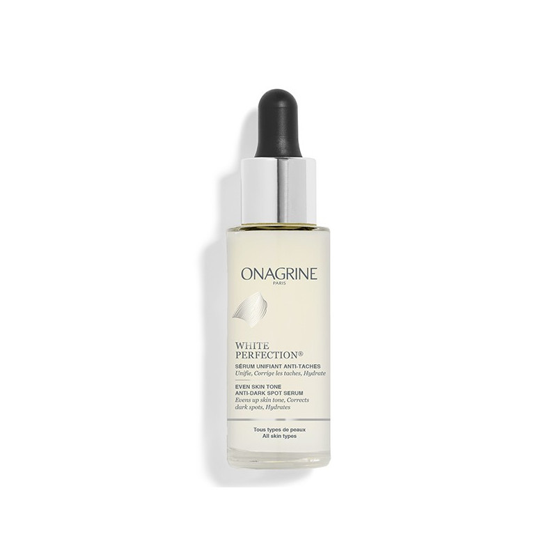 Onagrine White Perfection Sérum Unifiant Anti-Tâches 30ml délivre une puissance éclaircissante intense : il estompe les taches brunes et prévient leur apparition, révélant un teint unifié et lumineux.