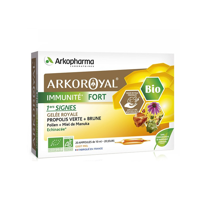 Arkopharma Arko Royal Trésor de la Ruche Gelée Royale 1500 mg Bio 20 Ampoules est un complément alimentaire à base de gelée royale, une substance sécrétée par les abeilles pour nourrir exclusivement l'une des leurs qui deviendra reine. Elle lui procurera une longévité de vie 40 fois supérieure et une intense productivité.