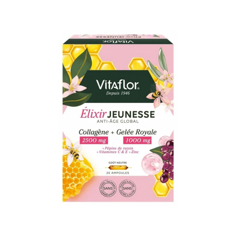 Vitaflor Élixir Jeunesse 20 Ampoules est spécialement conçu pour préserver la jeunesse de la peau.