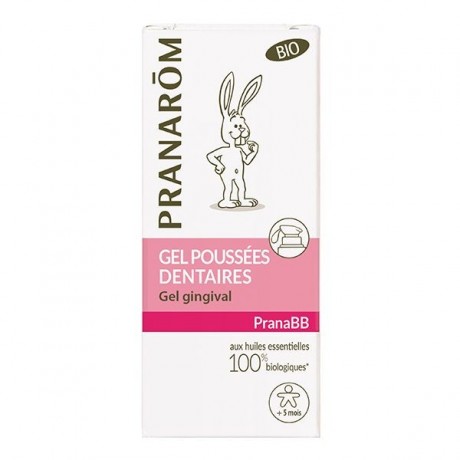 Pranarôm Science Prana BB Gel Gingival Poussées Dentaires 15 g aux huiles essentielles de camomille noble, katrafay, et giroflier soulage les gencives sensibles de bébé et apaise en cas d'inconfort.