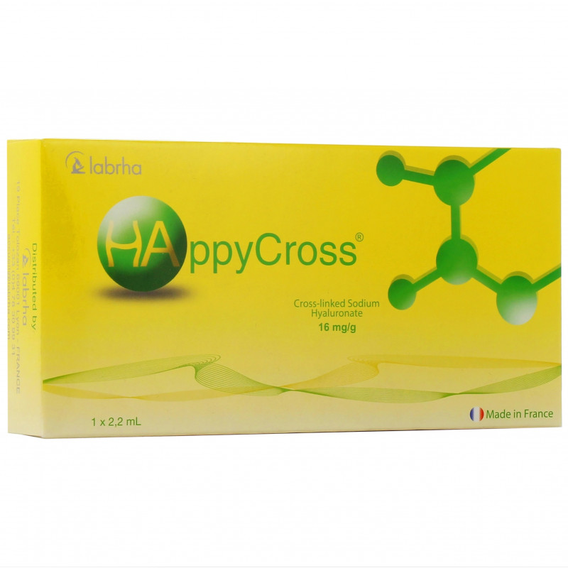 «BE HAPPY!», grâce à HAppyCross® (genou, hanche, cheville), notre viscosupplément de 2e génération développé et adapté à chaque articulation et dont l’efficacité a été démontrée scientifiquement.