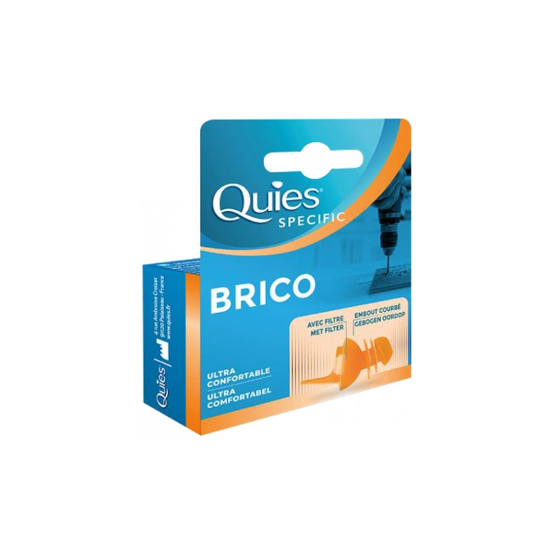 Quies Specific Protection Auditive Brico 1 Paire est une protection réutilisable dont l'embout courbé épouse parfaitement la forme du conduit auditif, assurant ainsi un confort idéal et une étanchéité acoustique optimale.