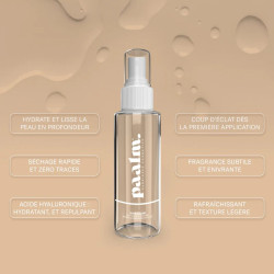 2. Secouez la bouteille et appliquez directement l’Hydraglow Paalm® en vaporisant une fine couche sur le visage et le décolleté ( 3 à 5 doses) en un mouvement rapide.
