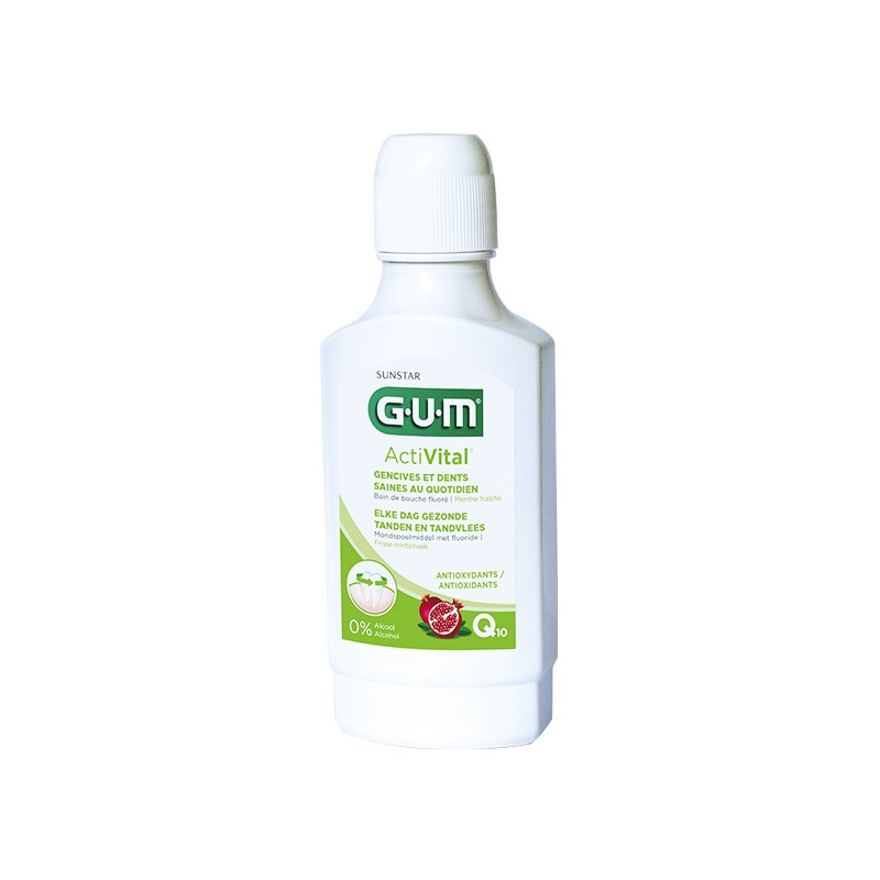 Spécifiquement pensé pour préserver la santé de vos dents et de vos gencives, Gum Bain de Bouche ActiVital 300ml est composé de différents produits aux vertus diverses :