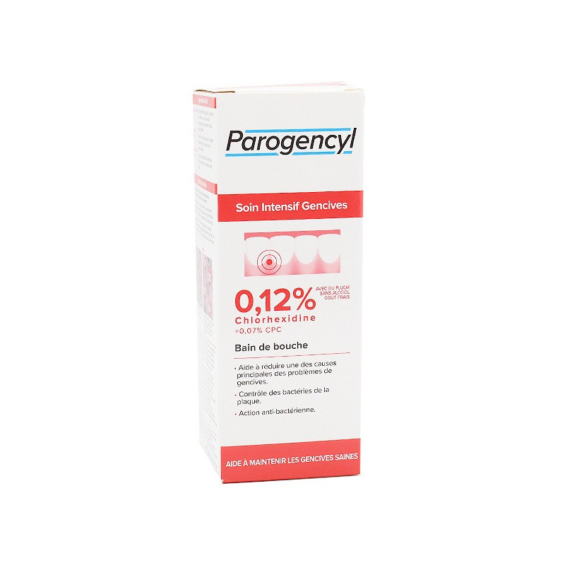 Parogencyl Soin Intensif Gencives Bain de Bouche 300ml protège les gencives, les caries et prévient les problèmes gingivaux.