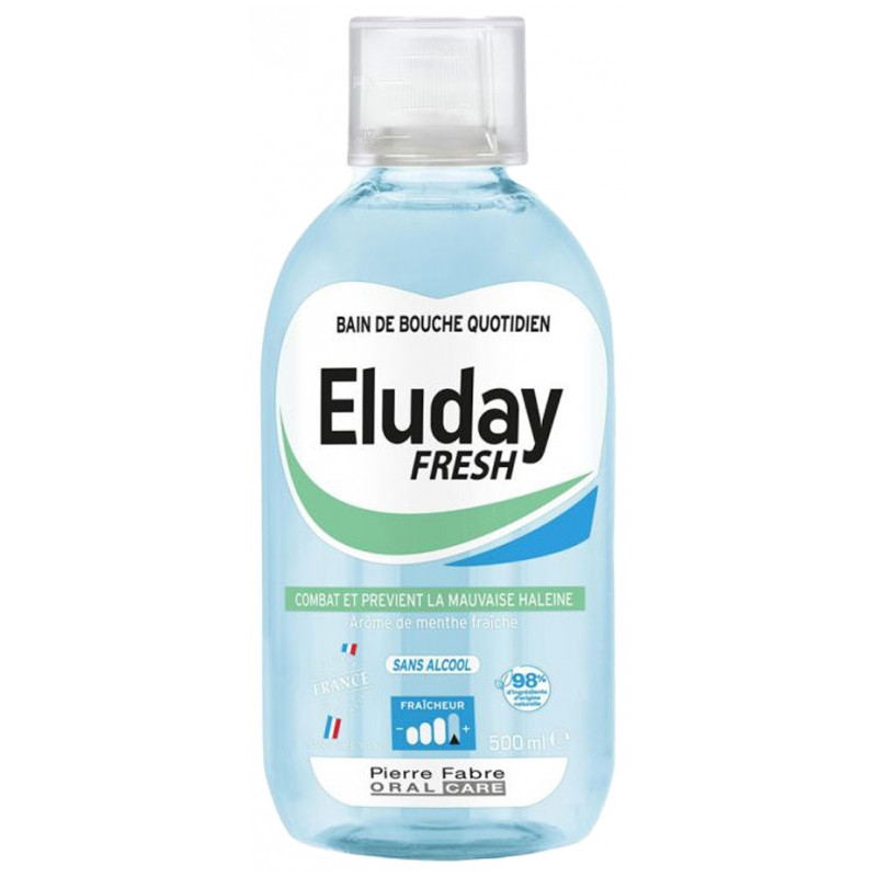 Pierre Fabre Oral Care Eluday Fresh Bain de Bouche 500 ml est un bain de bouche quotidien à l'arôme menthe fraîche.