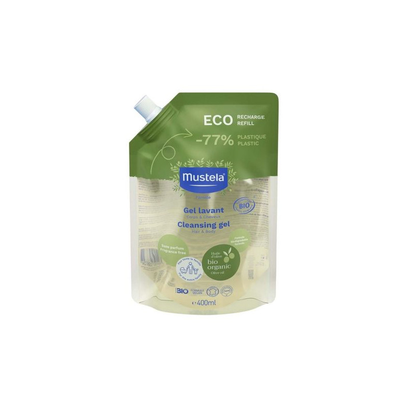 Le Gel Lavant Mustela Bio nettoie efficacement et respecte la peau délicate et le cuir chevelu des bébés et des enfants. Il convient au corps et aux cheveux, dès la naissance et pour toute la famille.