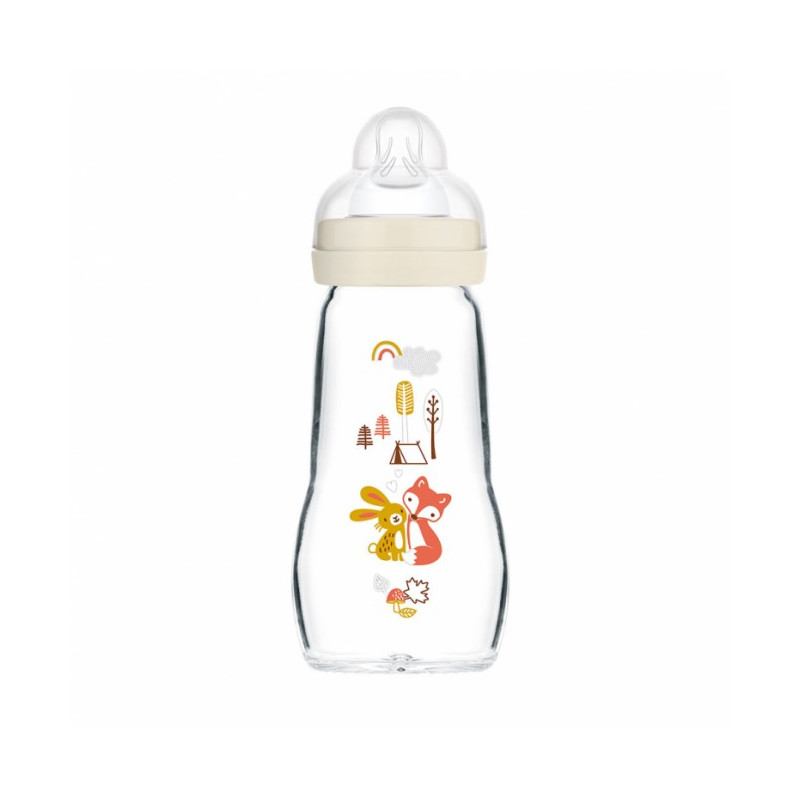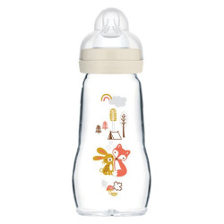 MAM Biberon Verre +2m Renard Lapin Blanc 260ml vous permettent de nourrir votre nourrisson à partir de 2 mois.