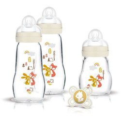 Le coffret biberons en verre de MAM contient 3 biberons en verre :