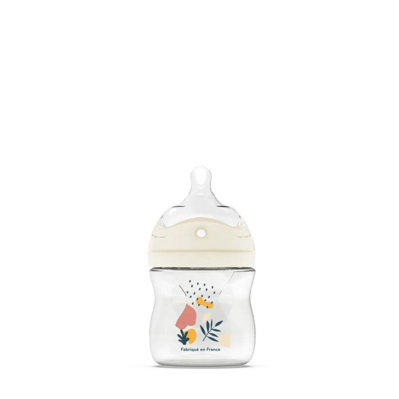 Le Biberon Anti-Colique Débit 1 Motif Terra Dodie convient aux bébés à partir de la naissance.