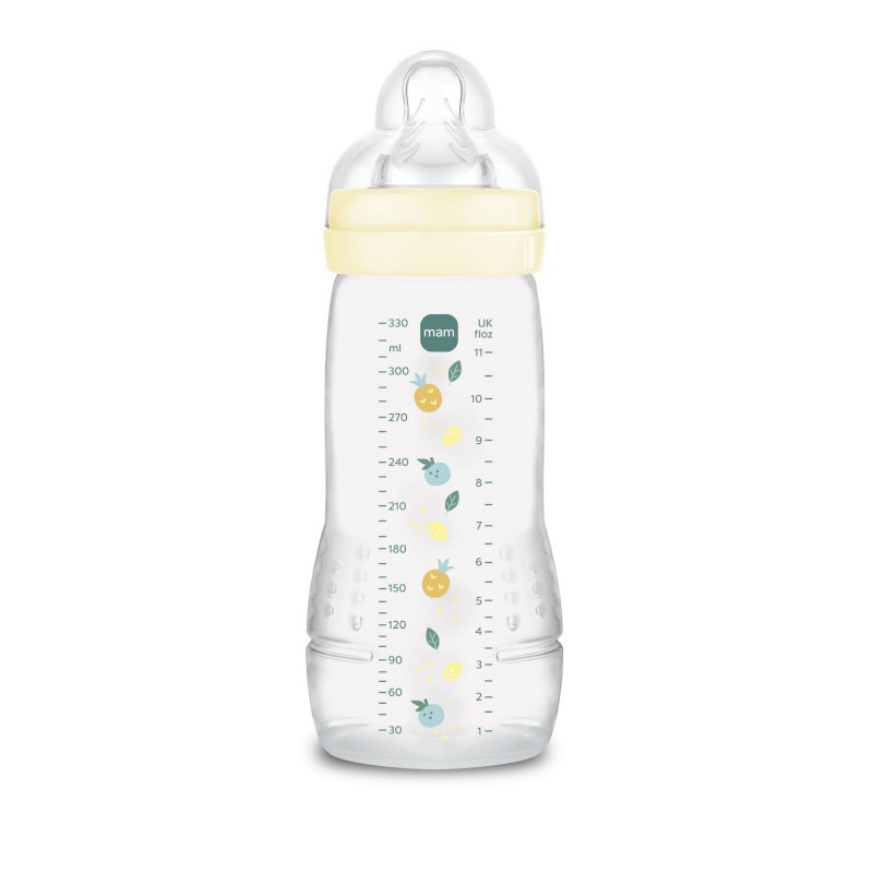 Le biberon MAM Easy Active 330 ml a été spécialement conçu pour accompagner les bébés à partir de 4 mois, à un âge où leur appétit grandit et leur curiosité s’éveille. Grâce à son format généreux, il est parfaitement adapté aux repas plus consistants et aux rythmes alimentaires des bébés plus grands.