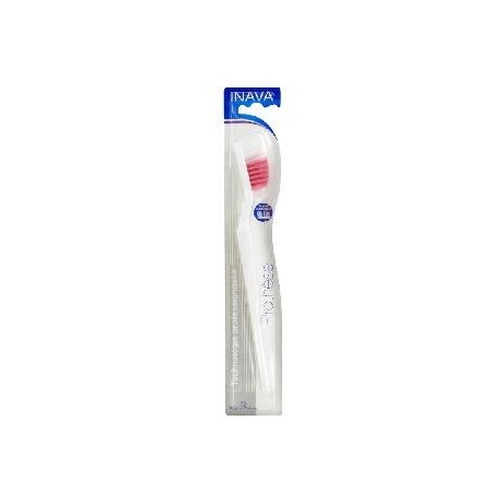 Inava Prothèse Brosse à Dents apporte une technologie professionnelle pour le soin quotidien des porteurs de prothèses. - Brins en Tynex finement arrondis : respect des dents et des gencives - Double-implantation idéale pour nettoyer les faces intérieures et extérieures des prothèses - Touffes à l'extrémité permettant de nettoyer les crochets ou zones difficiles d'accès.