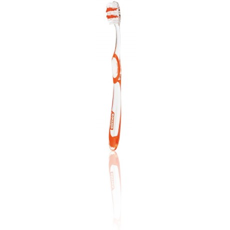 Brosse à dent Elmex medium. Pour un nettoyage efficace de vos dents, grâce à ses brins en X, tout en ménageant vos gencives.