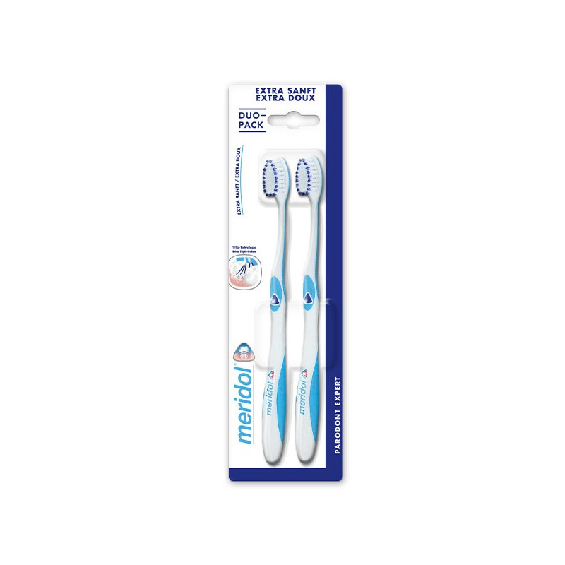 La brosse à dents Parodont Expert Meridol nettoie avec efficacité votre dentition et élimine la plaque dentaire, sans agresser vos gencives sensibles.