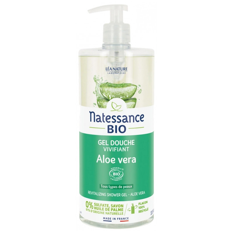 Enrichi en aloe vera reconnu pour ses multiples vertus : hydratante(1) et protectrice, le gel douche aloe vera vivifiant natessance®, à la texture gélifiée, rafraîchit la peau tout en déposant un délicat parfum végétal et printanier.