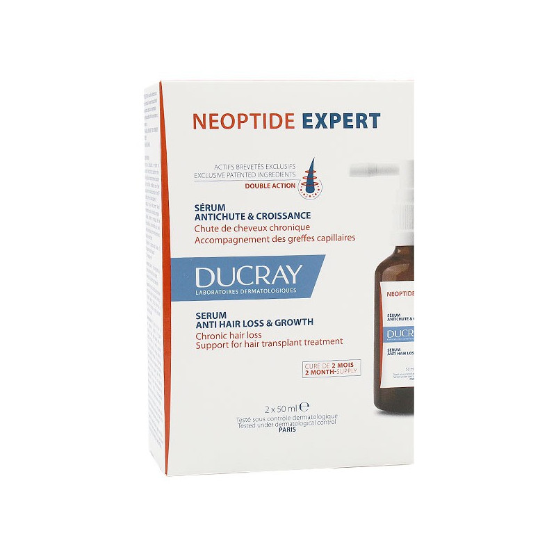 Ducray Néoptide Expert Sérum Capillaire Anti-Chute & Croissance Lot de 2 x 50ml freine la chute de cheveux chronique et stimule la croissance grâce à ses actifs brevetés exclusifs.