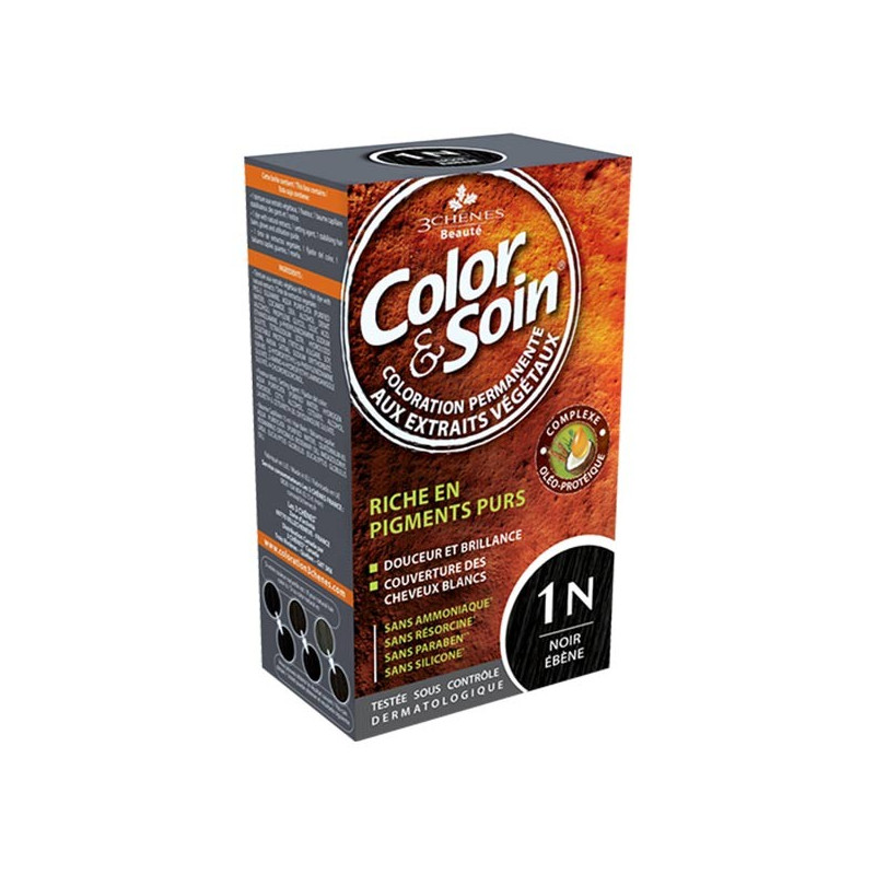 La coloration Color & Soin des 3 Chênes, permanente, couvre la totalité de vos cheveux. Si vous avez des cheveux blancs, ces derniers seront d'une belle couleur noire dès la première application.