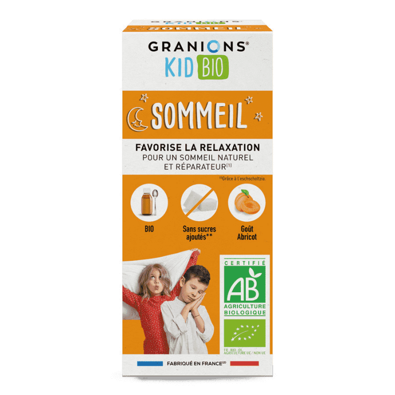 Granions Somdor+ Enfant Relaxation Sommeil 125 ml est un complément alimentaire bio pour favoriser la relaxation et le sommeil naturel et réparateur chez l'enfant.