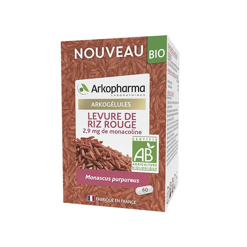 Arkopharma Arkogélules Levure de Riz Rouge Bio 60 Gélules est un complément alimentaire à base de levure de riz rouge et qui contient 2,9 mg de monacolines par gélule.