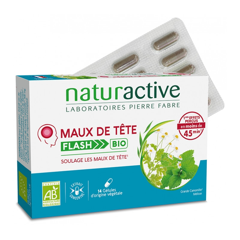 Naturactive Maux de Tête Flash Bio 14 Gélules est un complément alimentaire qui agit sur les maux de tête.