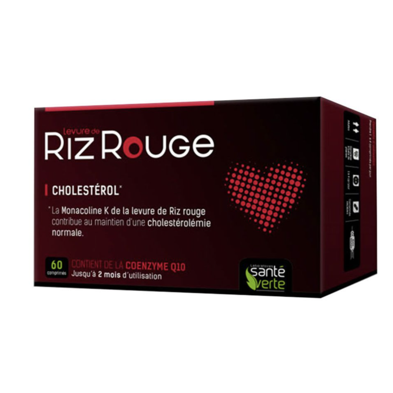 Les Laboratoires SANTE VERTE, vous proposent la Levure de Riz rouge, un complément alimentaire à base de levure de riz rouge, d'extrait d'artichaut, de coenzyme Q10 et de vitamine E
