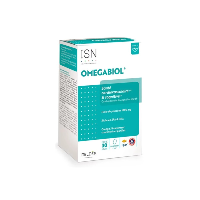 OMEGABIOL® est un complément alimentaire à base d’huile de poissons sauvages, riche en Oméga 3 (EPA et DHA) hautement concentrés et purifiés, qualité certifiée EPAX, pour le maintien des fonctions cognitives et cardiovasculaires.