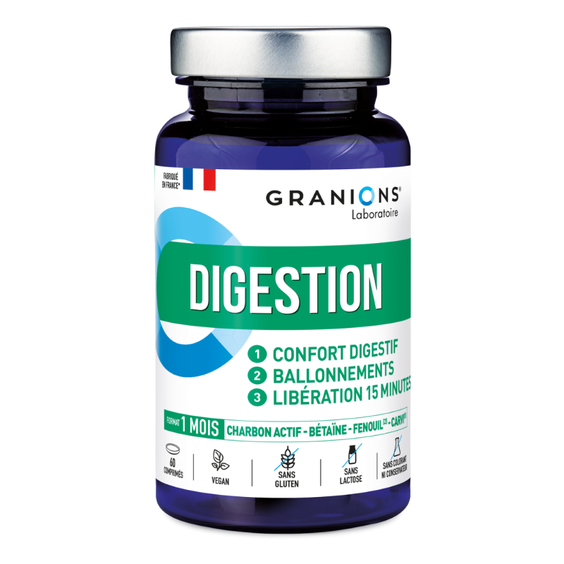 Les comprimés de Granions Digestion sont faciles à prendre et adaptés à une utilisation quotidienne. Ils conviennent aux personnes souffrant de ballonnements, de douleurs ou de crampes abdominales, ainsi qu'à celles qui cherchent à améliorer leur confort digestif. Avec Granions Digestion, retrouvez un confort digestif optimal et profitez pleinement de vos repas en toute sérénité.