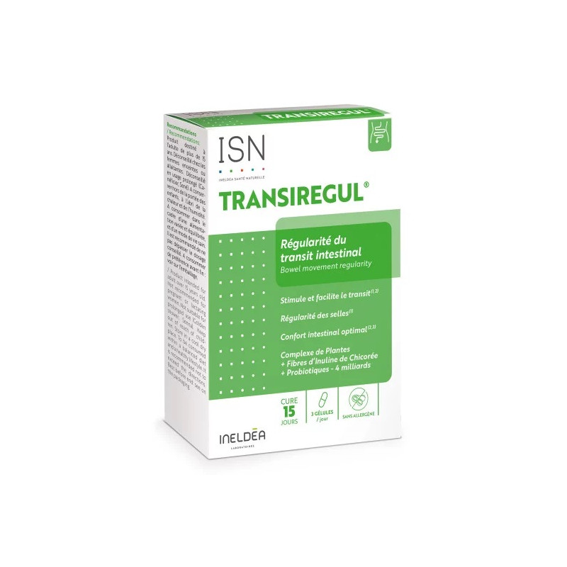 TRANSIREGUL® Nouvelle formule est un complément alimentaire à base d’extraits de Plantes (dont pruneau, mauve), de Fibres prébiotiques et de Probiotiques pour stimuler et faciliter le transit, tout en améliorant le confort intestinal.