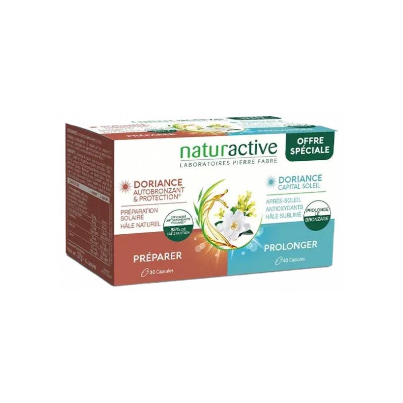 Naturactive Doriance Autobronzant & Protection 30 Capsules + Capital Soleil 60 Capsules est un produit polyvalent et efficace pour préparer votre peau à l'exposition solaire tout en prolongeant votre bronzage.
