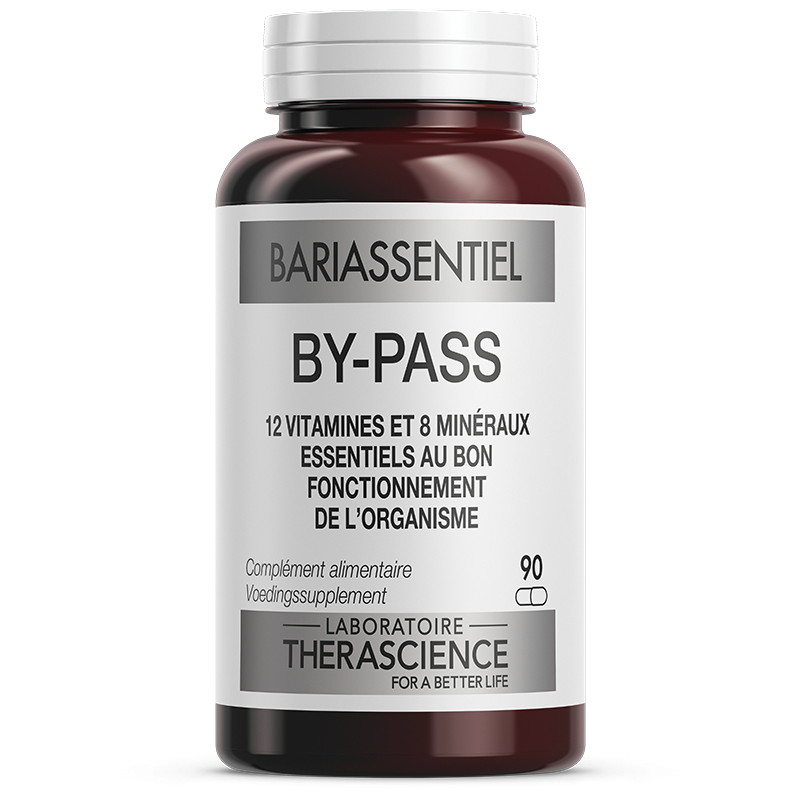 BARIASSENTIEL BY-PASS associe 12 vitamines (vitamines A, B1, B2, B3, B5, B6, B8, B9, B12, C, D3 et E naturelles) et 8 minéraux (chrome, cuivre, fer, iode, manganèse, molybdène, sélénium, zinc) dans 1 seule gélule, qui contribuent à :