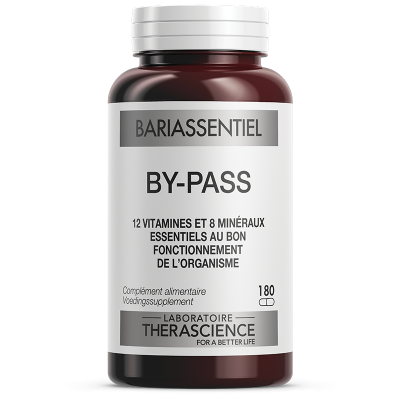 BARIASSENTIEL BY-PASS associe 12 vitamines (vitamines A, B1, B2, B3, B5, B6, B8, B9, B12, C, D3 et E naturelles) et 8 minéraux (chrome, cuivre, fer, iode, manganèse, molybdène, sélénium, zinc) dans 1 seule gélule, qui contribuent à :