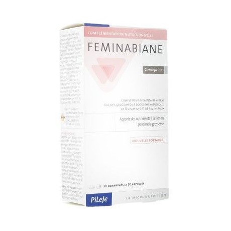 Afin de préparer leur grossesse et d'assurer le développement harmonieux du foetus, c'est dès le désir d'enfant que le statut micronutritionnel de la future maman doit être optimal. De plus, durant toute la durée de la grossesse la future maman va avoir des besoins nutritionnels accrus et son statut nutritionnel va avoir un impact majeur sur le développement de bébé. Feminabiane Conception est spécialement formulé pour accompagner la femme enceinte depuis la conception jusqu'à la fin de sa grossesse. Ce complément alimentaire est composé de DHA, vitamines B1, B2, niacine, B6, folates, B12, D, E ainsi que de zinc, calcium et magnésium. Les folates contribuent à la croissance des tissus maternels pendant la grossesse. La vitamine D et le calcium contribuent au maintien d'une ossature normale. Le DHA contribue au maintien d'une fonction cérébrale normale. Il contribue également au développement normal de la vision et du cerveau du fetus.
