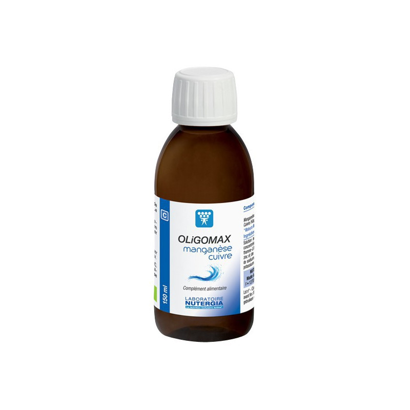 Oligomax manganèse-cuivre est une synergie de minéraux et oligoéléments d’origine naturelle : association d’eau de mer concentrée et de lithothamne, algue rouge source d’oligoéléments. Y sont ajoutés des oligoéléments sélectionnés pour leurs bienfaits, dont le manganèse et le cuivre.