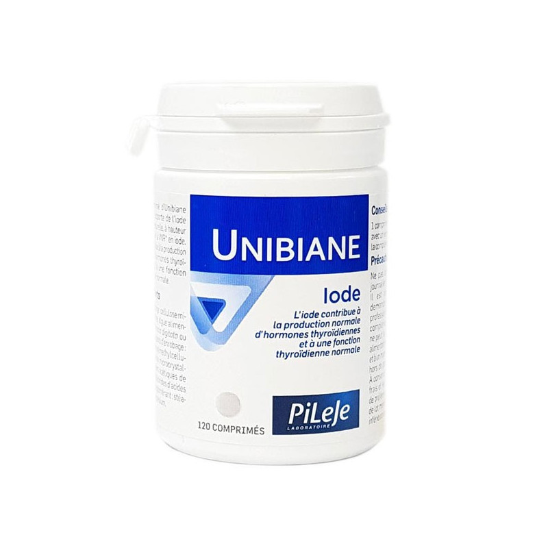 Pileje Unibiane Iode 120 comprimés, est un complément alimentaire qui procure un apport en Iode. L’iode est le constituant essentiel des hormones thyroïdiennes.