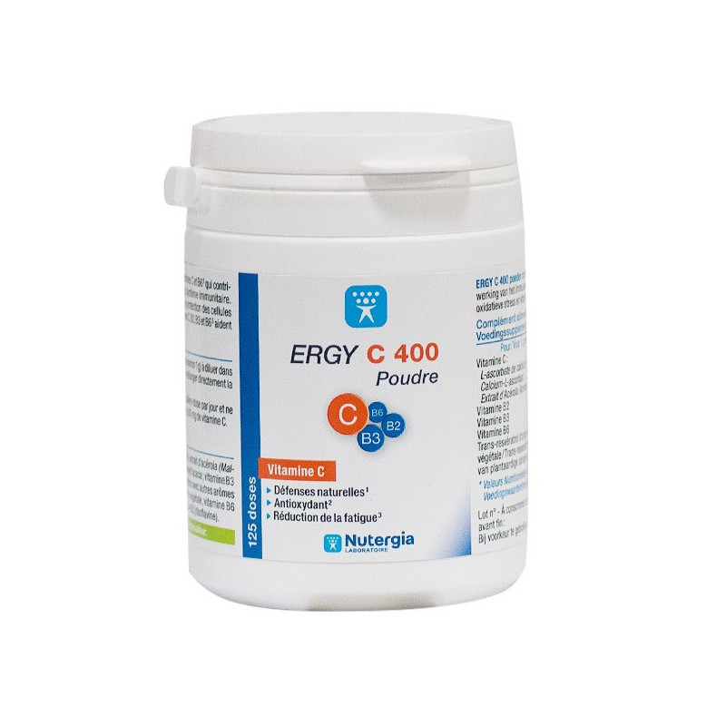 ERGY C 400 Poudre est un complément alimentaire sous la forme exclusive de poudre concentrée en vitamine C (1 dose = 400 mg de vitamine C).