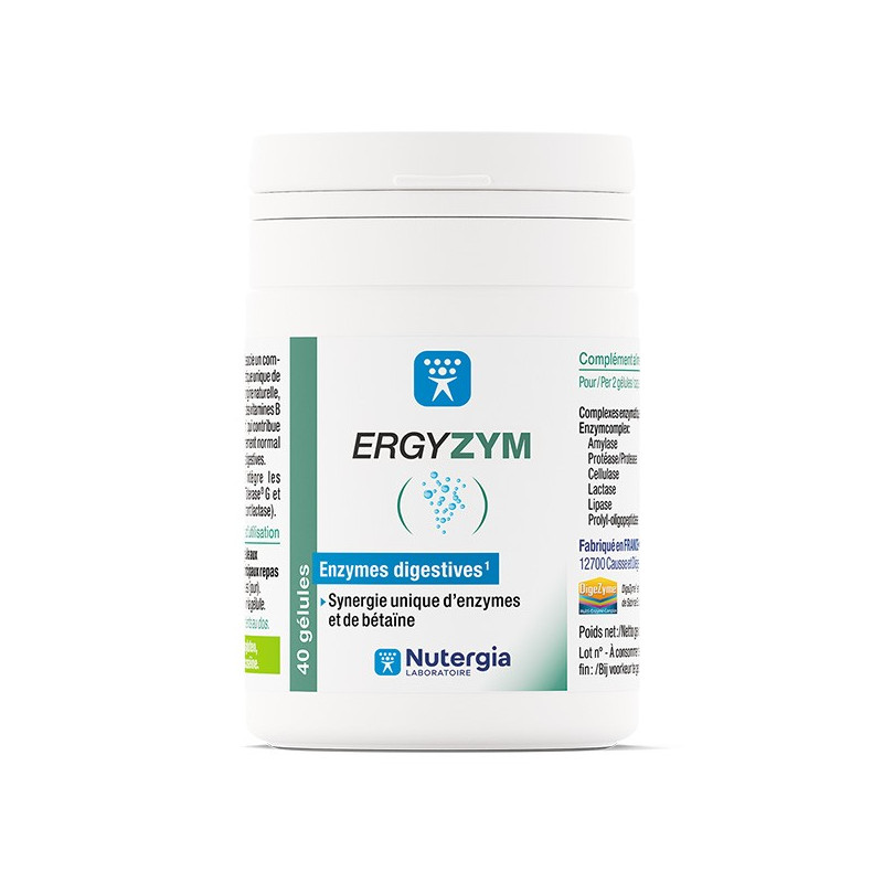 ERGYZYM pourra être conseillé pour soutenir le bon fonctionnement enzymatique au cours de la digestion. Il sera ainsi particulièrement adapté en cas de repas copieux (riche en protéines, glucides, lipides, excès d’alcool) ou pris trop rapidement (mastication insuffisante), ainsi qu’en cas de sensibilité digestive au gluten ou au lactose par exemple.