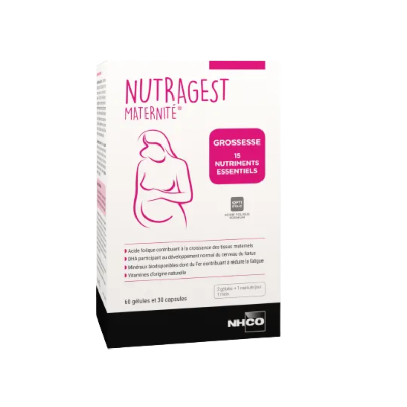 Pendant la grossesse, les besoins nutritionnels évoluent afin d’assurer le bon développement du fœtus. Un apport adapté en nutriments est alors important pour le bon déroulement de la grossesse, le bien-être et la vitalité de la future maman. Les Laboratoires NHCO Nutrition® ont développé Nutragest Maternité®, une formule complète et adaptée aux besoins liés à la grossesse. Elle apporte des nutriments destinés à la mère et au fœtus, soigneusement sélectionnés selon des critères de qualité et de sécurité :