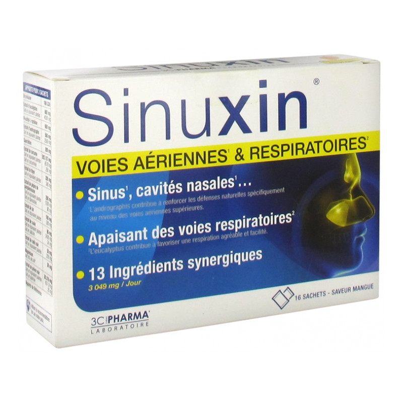 3C Pharma Sinuxin 16 Sachets est un complément alimentaire avec actifs d'origine naturelle conçu pour dégager les voies respiratoires et aériennes.