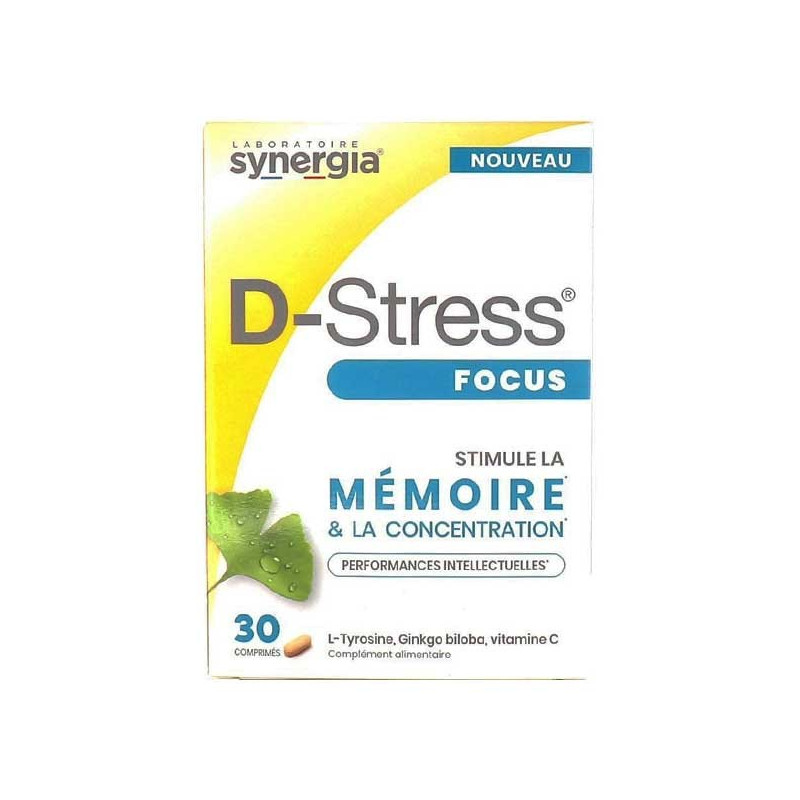 Synergia D-Stress Focus 30 comprimés est un complément alimentaire du laboratoire Synergia à base de L-Tyrosine, Ginkgo biloba, Vitamine C.