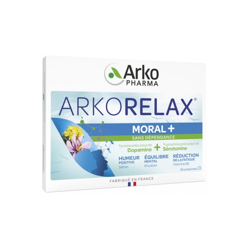 Arkopharma Arkorelax Moral+ 30 comprimés est un complément alimentaire du laboratoire Arkopharma à base de L-tyrosine, L-Trytophane.