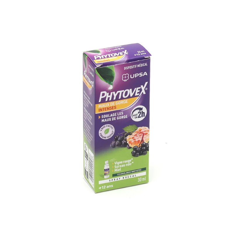 Le spray buccal UPSA Phytovex est un dispositif médical destiné à soulager les maux de gorge intenses chez les adultes et les enfants à partir de 12 ans.
