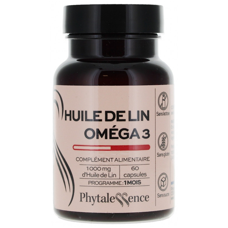 Phytalessence Huile de Lin Oméga 3 60 Capsules est un complément alimentaire à base d'huile de lin.