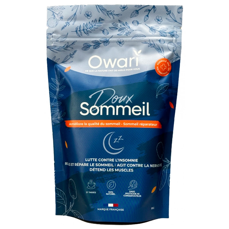 Découvrez Doux Sommeil, une infusion de chez Owari qui favorise un sommeil réparateur et apaisant.