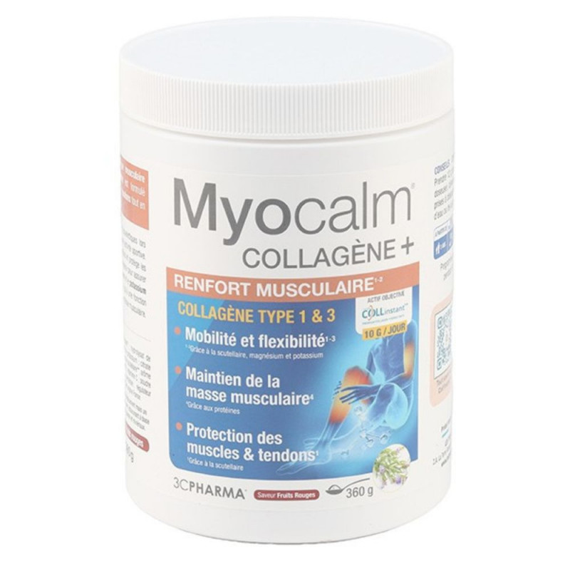 3C Pharma Myocalm Collagène + Renforcement Musculaire 360 g est un complément alimentaire qui agit sur le renfort musculaire.