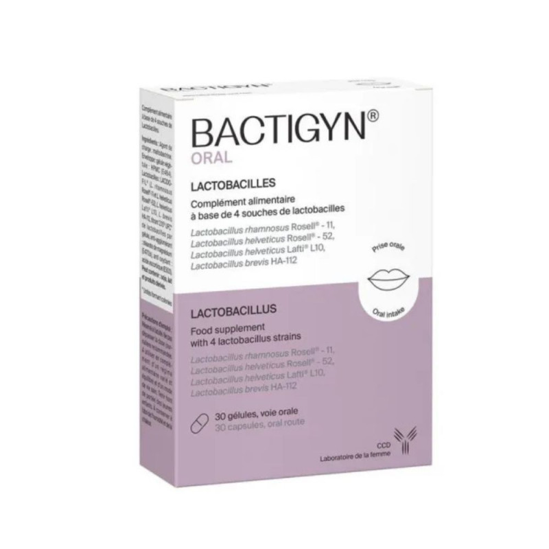 Issu de la recherche CCD, BACTIGYN Oral est un complément alimentaire formulé à partir de différentes souches de Lactobacilles dosé à 2.10 UFC*.