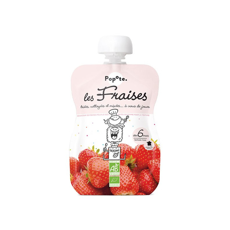 Popote Les Fruits Gourde Fraise +6m Bio 120g est une compote à la fraise pour bébés dès 6 mois. A base de fraises 100% bio et lisse, elle est facile à mélanger avec d’autres ingrédients pour épater le palais de Bébé.
